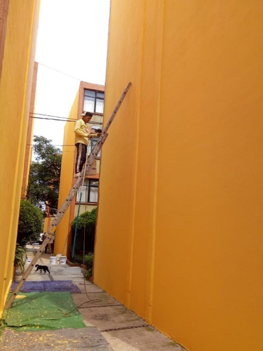 Trabajos de aplicación de pintura en fachadas”, ubicada en calle Camino a Belén no. 85, colonia Cove, c.p. 01120, Ciudad de México, Unidad Habitacional Sears Roebuck.