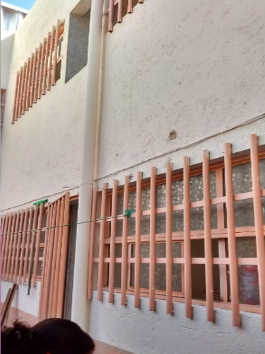 Trabajos de aplicación de barniz e impermeabilización en fachadas de la Unidad Habitacional Benvenuto Cellini 206.